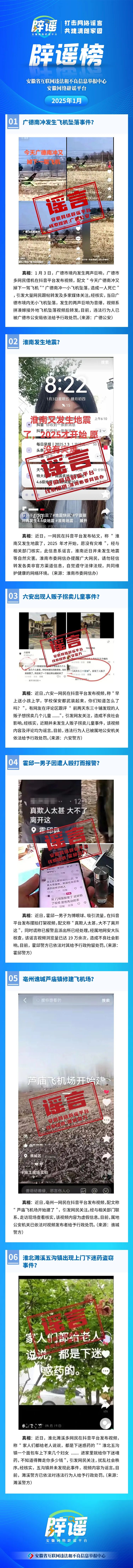 安徽网络辟谣平台2025年1月辟谣榜发布