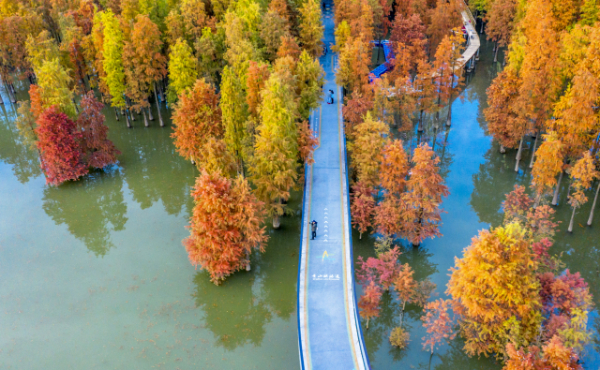 10月21日,随着秋天到来,杭州市临安区青山湖景区内成片的水杉渐红,入眼成画,景区也迎来了“最美景色”。图文:潘秀婷 夏华聪