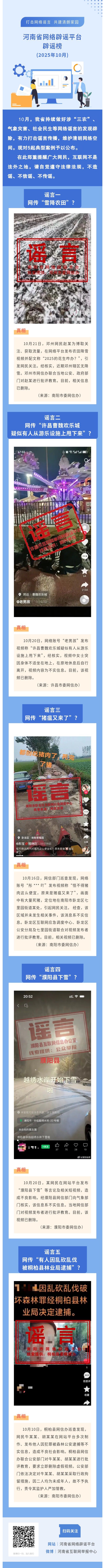 “打击网络谣言 共建清朗家园” 河南省网络辟谣平台2025年10月辟谣榜