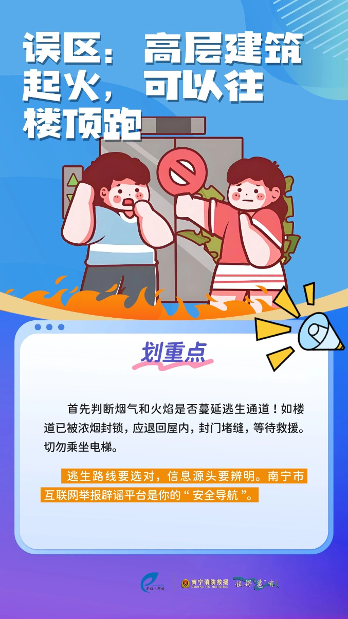 2025年全国消防宣传月活动期间,南宁市互联网举报辟谣平台联动南宁消防整理了九大高频涉消防安全知识误区,做成了图文并茂、一看就懂的科普海报!
