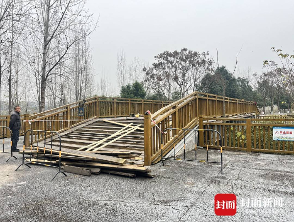 12月29日下午16时许,记者来到网友拍摄所在地看到,确有一则封桥检修公告,其位置正好在沱三桥下方。然而,旁边休闲游玩的市民却称,这个公告所指的桥其实在另一则。顺着市民手指的方向,记者步行几十米后,看到有工人正在一座桥上更换木板。