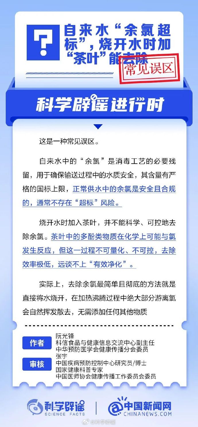 自来水“余氯超标”,烧开水时加“茶叶”能去除?