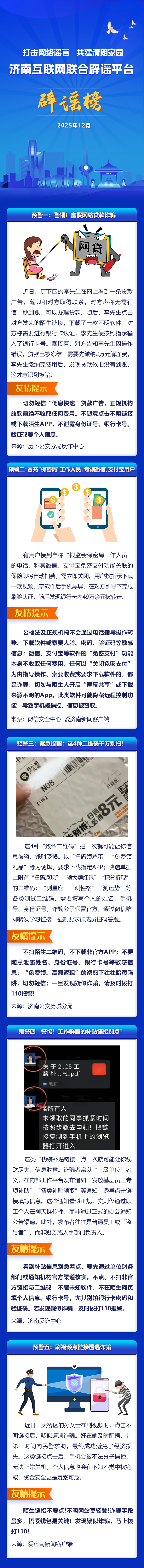 济南互联网联合辟谣平台2025年12月辟谣榜单