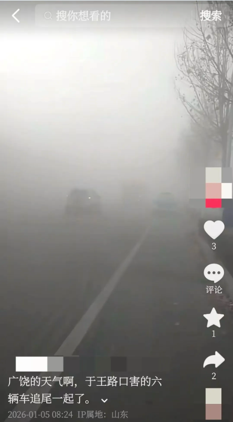 2026年1月5日,广饶县居民耿某在某平台发布“于王路口6车追尾撞在一起”的不实视频及语音。