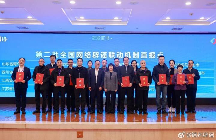 1月26日,全国网络辟谣联动机制直报点建设现场推进会在浙江温州举行。会上公布了第二批“全国网络辟谣联动机制直报点”名单,锦州市委网信办成功入选。