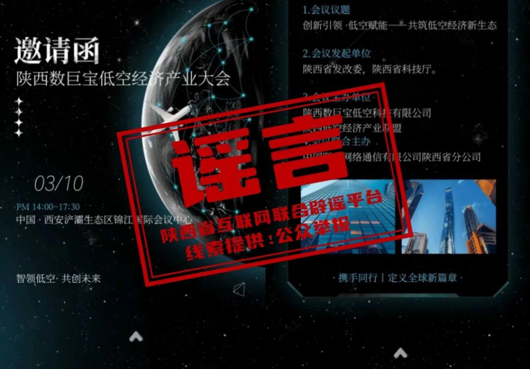 近日,针对网络上流传的关于“陕西数巨宝低空经济产业大会”的不实信息,经与陕西省科学技术厅核实,该活动系冒用其名义进行的虚假宣传,提醒各单位及广大企业提高警惕,切勿上当受骗。
