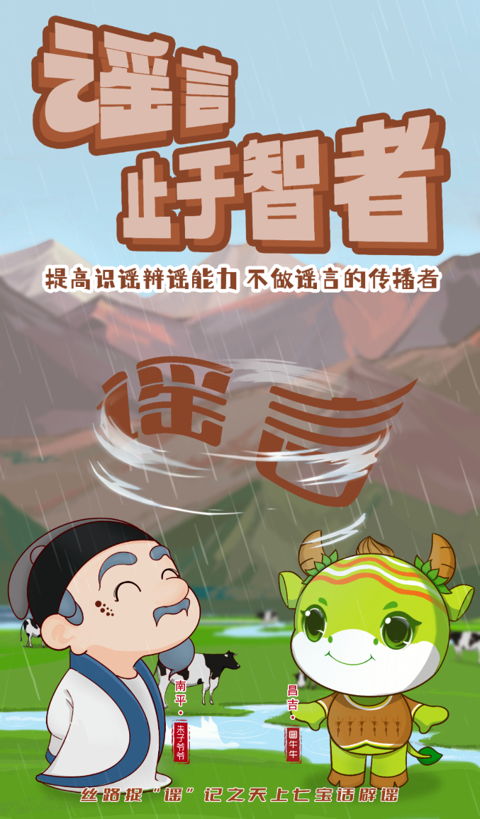 在青山绿水间,图牛牛与朱子爷爷共倡理性思考,提升识谣能力,让谣言消散于智慧。