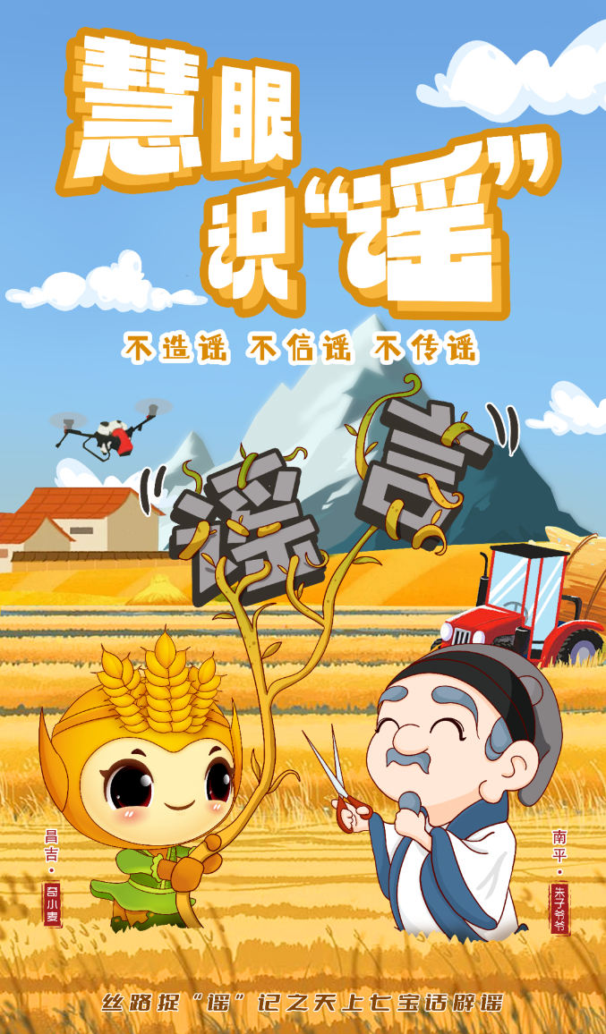 在金色麦田里,奇小麦与朱子爷爷一同修剪谣言 “毒苗”,练就慧眼,坚决不造谣、不信谣、不传谣。