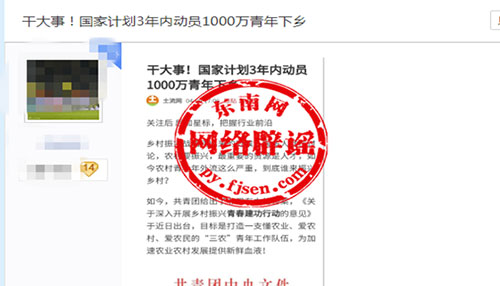 原标题:国家计划3年内动员1000多万青年下乡?共青团中央实力辟谣