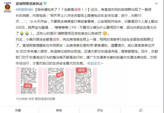 6月3日,宣城网警巡查执法对此信息进行了辟谣。网警指出,交警部门对于交通违法行为的整治每天都是进行时,请广大交通参与者时刻遵守交通法律法规,文明守法出行,才是对自己的生命安全最大的负责。