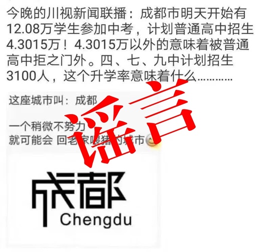 对此,成都市教育局相关负责人表示,这条信息所述不属实,提醒考生和家长不要轻信。