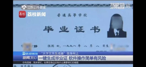 近日,网上出现一种大学毕业证书生成器,用户可自行编辑生成各类大学毕业证图片。不仅有国内大学,国外大学的毕业证也可生成。