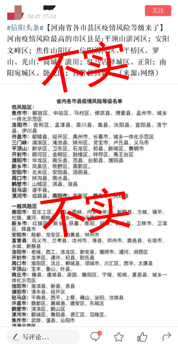 那么,网传的“河南省各市县区疫情等级来了”的分类名单是怎么来的呢?