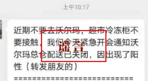 近日,一则“沃尔玛总仓配送检测出(新冠病毒)阳性”的消息在多地流传。