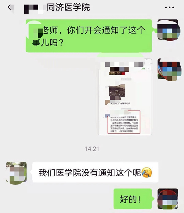 近日,一则“同济今天开会通知:近期不要去沃尔玛和任何有外资背景的超市,超市冷冻柜不要接触……”的微信聊天截图在网上传播,引发网友关注。