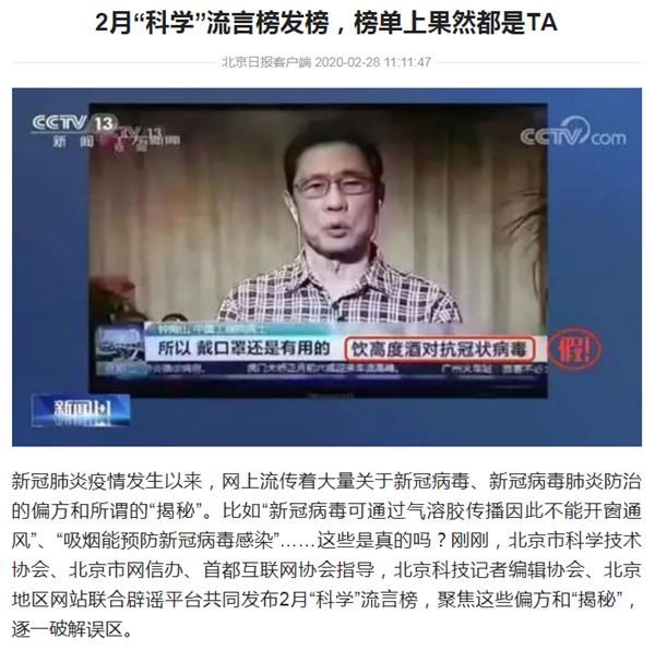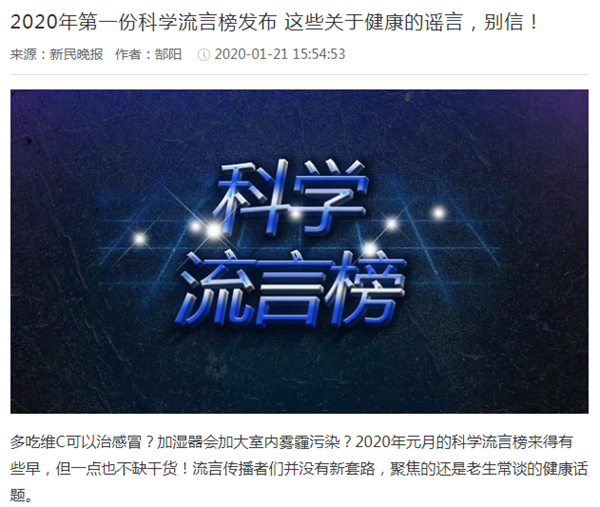 每月“科学”流言榜由北京市科学技术协会、北京市网信办、首都互联网协会指导,北京科技记者编辑协会、北京地区网站联合辟谣平台共同发布,得到中国科普作家协会科技传播专业委员会、中国晚报科学编辑记者学会、上海科技传播协会、北京市科学技术情报研究所的支持。