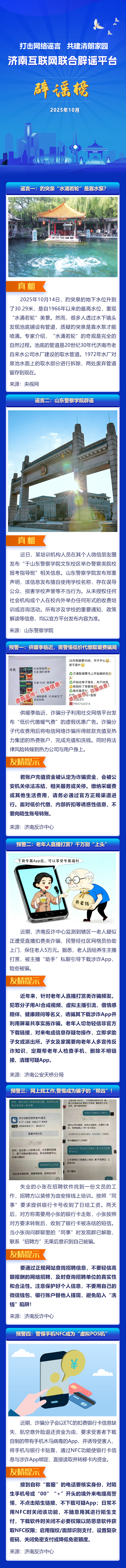 济南互联网联合辟谣平台2025年10月辟谣榜单