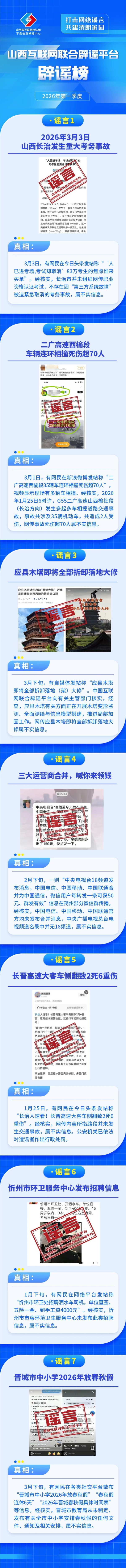 山西互联网联合辟谣平台2026第一季度辟谣榜发布