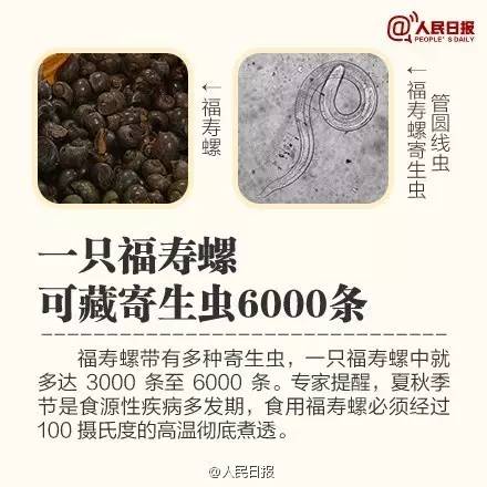 一只福寿螺可藏寄生虫600条;没熟的黄鳝里的颚口线虫会钻进眼睛;小龙虾体内可能携带肺吸虫;吃不熟的牛排,或可长出1米多绦虫;这些食物千万别再生吃了,务必提醒身边小伙伴~