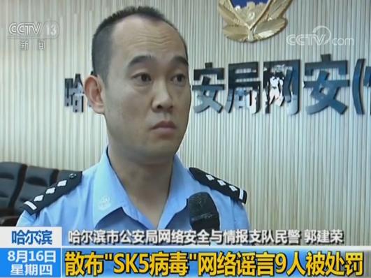 近日,许多黑龙江网民在微信群中看到哈尔滨“SK5病毒”致人死亡的谣言,此类传言前些年也曾出现过,经公安机关核实纯属谣言。目前,公安机关已经依法处罚9人。