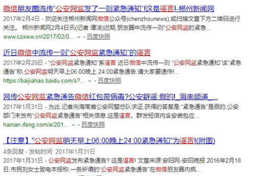 类似内容的《公安网监通知》很多年前就已出现过,全国多地都曾传播,均系谣言。