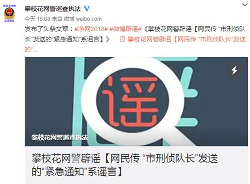 原标题:公安网监“紧急通知”微信红包有毒?攀枝花网警:谣言勿信