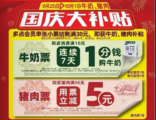 据媒体报道,在北京多家超市,凭借猪肉票,购买猪肉满50元立减5元。