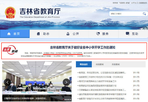 真相:查阅吉林省教育厅网站发现,网传“通知”并不存在,明确有“全省高三年级4月7日开学”的《吉林省教育厅关于做好全省中小学开学工作的通知》依然在网站头条位置展示。经长春市网信办向吉林省教育厅核实,网传内容不实,请各位家长、学生和网友不要相信。