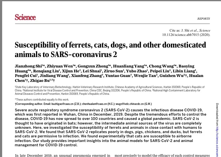 更重要的是该研究呼吁密切监测和保护疫区的猫,避免其接触传染源,防止其成为可能的传播宿主或储存宿主。这项研究得到了科技部国家重点研发计划及应急专项的支持。相关结果4月8日在《科学》杂志上在线发表。