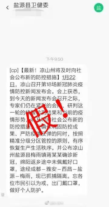 日前,盐源县公安局网情大队在日常网络巡查工作中发现,一则称盐源县梅雨镇有返乡人员确诊新冠肺炎1例的信息在网络平台上大面积传播。盐源县公安局随即快速反应,顺线追踪,缜密侦查,确认此为不实信息。