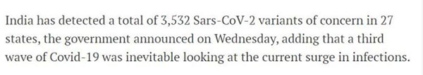包括《印度斯坦时报》等在内的媒体,对这一消息的报道较为简略,可能是产生该误读的原因。《印度斯坦时报》在稿件中称,印度政府5日宣布,印度在27个邦共计发现了3532个“值得关注的新冠病毒突变”(Sars-CoV-2 variants of concern),而并非“3532种新冠变异毒株”。