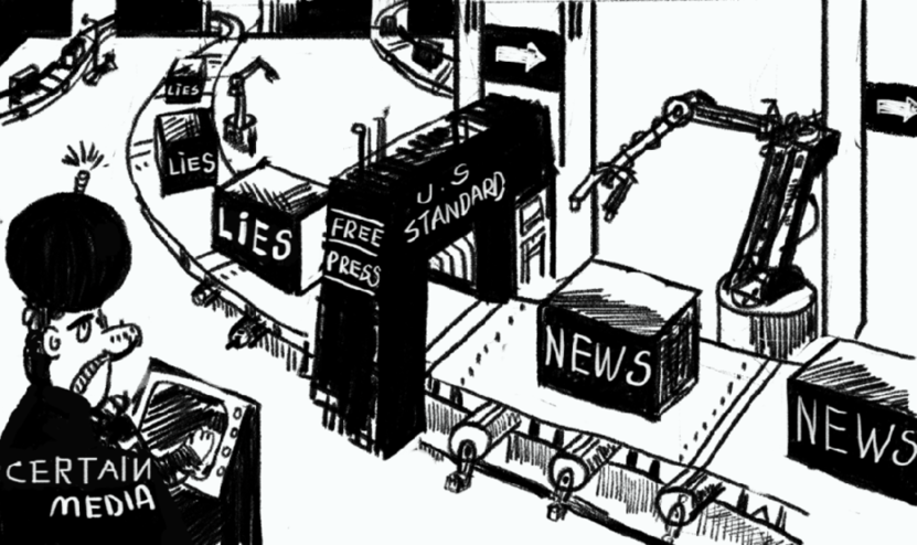 ▲在神奇的“美式标准”生产线上,没有什么谎言是不能被包装成新闻的!