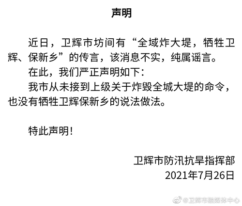 来源: 卫辉市融媒体中心官方微博时间: 2021-07-26