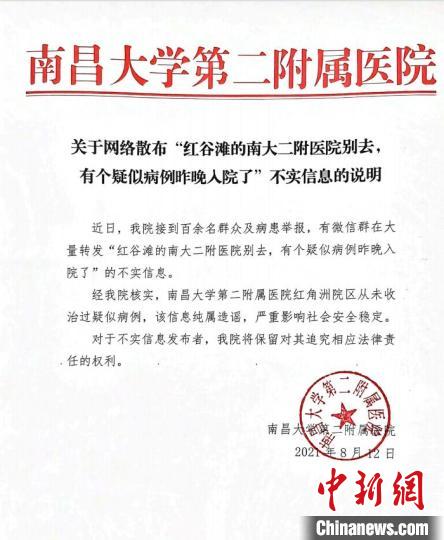 针对网传“红谷滩的南大二附医院别去,有个疑似病例昨晚入院了”情况,中共南昌市红谷滩区委宣传部官方微信公众号“红谷滩发布”12日晚间发布通报辟谣,经核实,该信息纯属谣言。