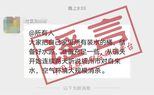 近日,扬州市民微信群中一条储水通知的截图被大量转发,称因为抗疫消毒需要,对城区自来水进行全面消杀,短期自来水将无法饮用。