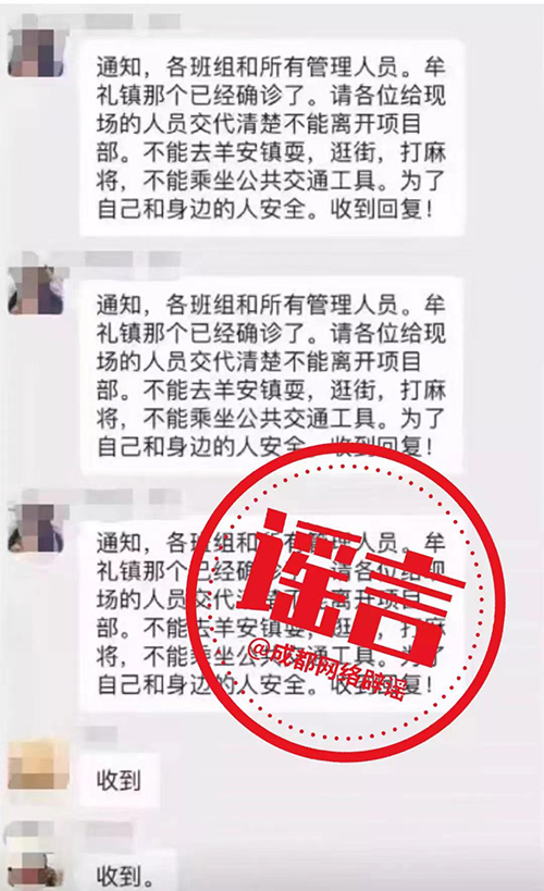 成都邛崃市牟礼镇有新冠确诊病例?谣言