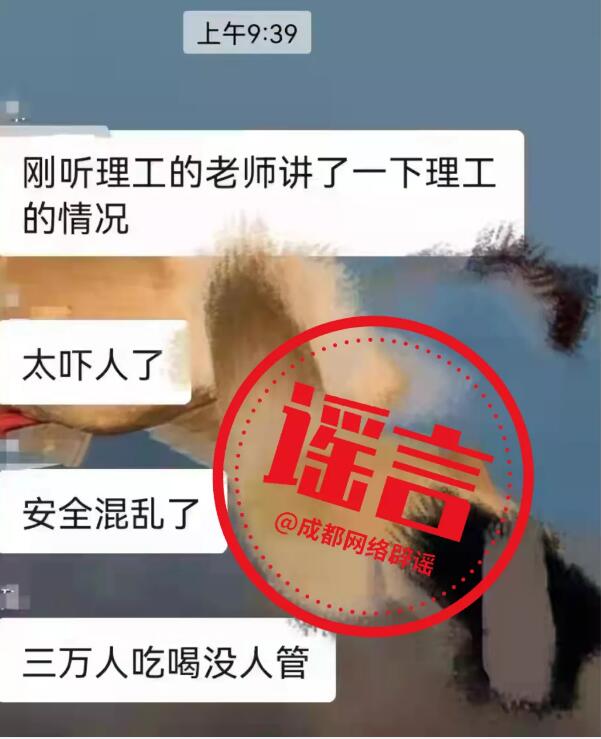 近日,因成都市成华区理工东苑小区西区出现多例本土确诊病例,成都理工大学于11月5日起实施封闭管理。日前,有个别网民在微信群发布信息称“成都理工大学三万人吃喝没人管”“理工安全混乱”,引发舆论关注,更有网民质疑学校疫情期间后勤保障不到位、有关部门不作为等问题。
