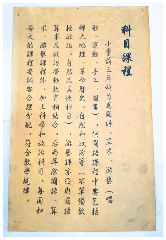 瑞金列宁小学旧址内的科目课程。
