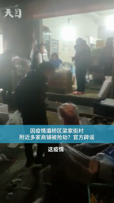 12月23日,有网友视频报料称,12月22日晚,因西安即将于23日零点封城,灞桥区梁家街村附近多家商铺被“抢劫”。据网传视频中介绍,一群人冲进店铺,疯抢乱拿,也不付钱,不少店铺被“洗劫一空”。