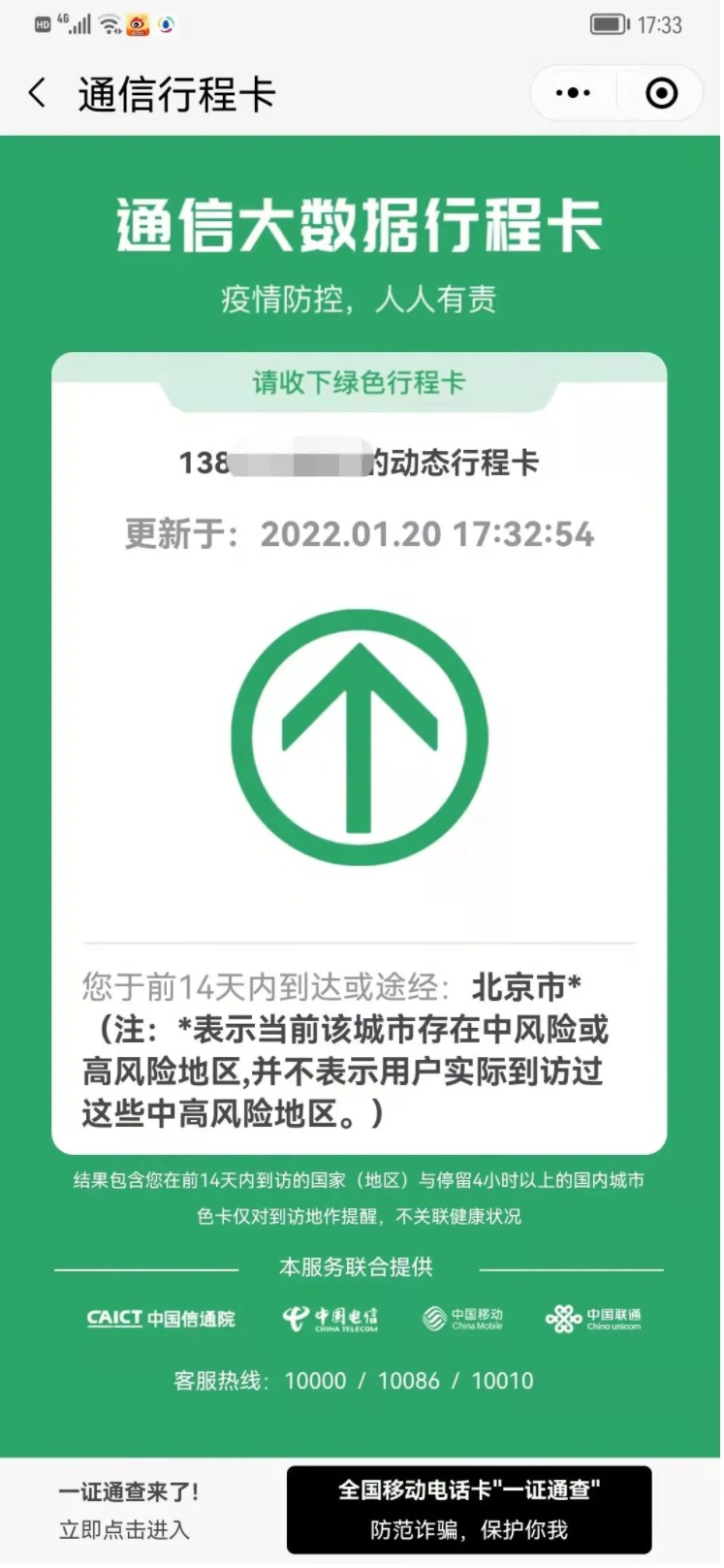 通信行程卡可以查询个人在前14天内的国内和国际行程。它精确到中国的省市(停留时间超过4小时)和外国的国家。14天后访问的城市将不显示(查询结果可能延迟一天)。(记者 胡德成)