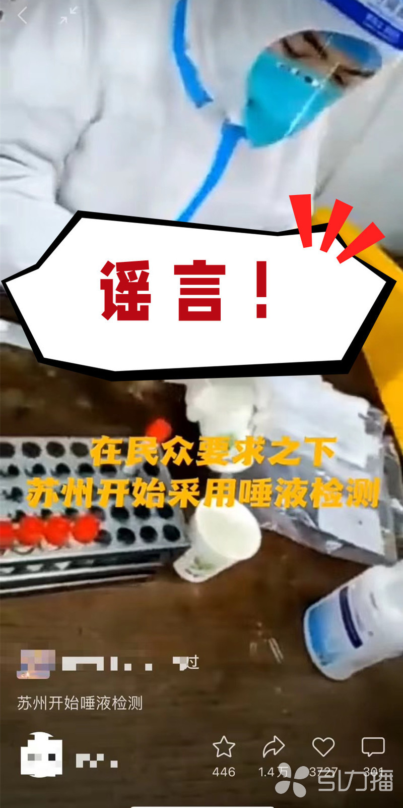 网上的一条短视频称,苏州已经开始唾液检测。这是假的!不存在这样的情况!