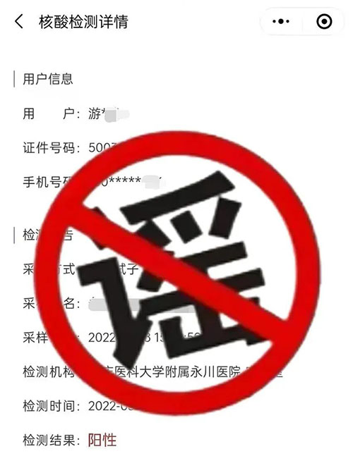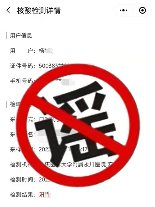 经核实,该截图系发布者出于恶作剧心理,将阴性检测结果自行PS成阳性。目前,公安机关已对发布者进行了法制教育。