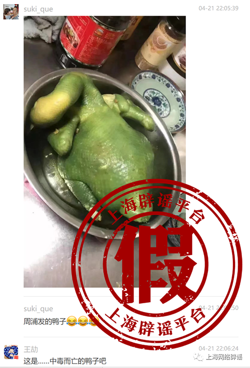 上海周浦镇发的鸭子变绿?谣言