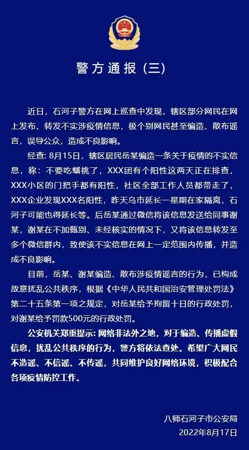 提醒广大网民:网络空间不是法外之地,广大网民要严格遵守法律法规,规范网络行为,理智对待网上传闻,认真辨别和分析信息来源和真实性,在没有掌握信息真实性的前提下,不随意转发和评论,做到不信谣、不造谣、不传谣,共同维护健康有序的网络环境和社会秩序!