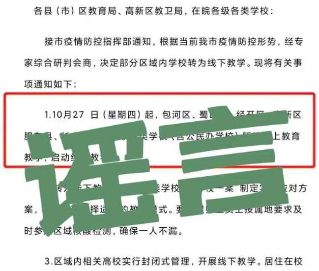 合肥部分区域10月27日恢复线下教学?谣言