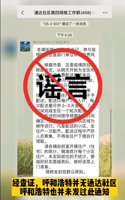 封控小区将免费配送蔬菜食品?居家隔离人员将享受补贴?呼和浩特辟谣!
