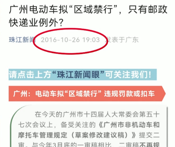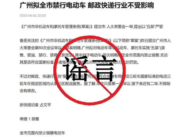 广州拟全市禁行电动车?假的