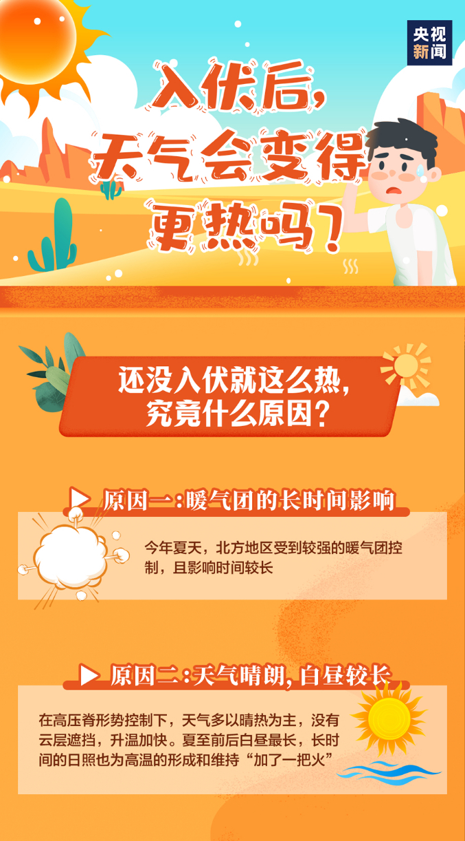 连日来,北方多地国家气象观测站的日最高气温突破历史极值,不断刷新历史纪录。今年天气这么热,究竟是什么原因?进入三伏天后,会更热吗?如何应对三伏天?三伏天有哪些禁忌?