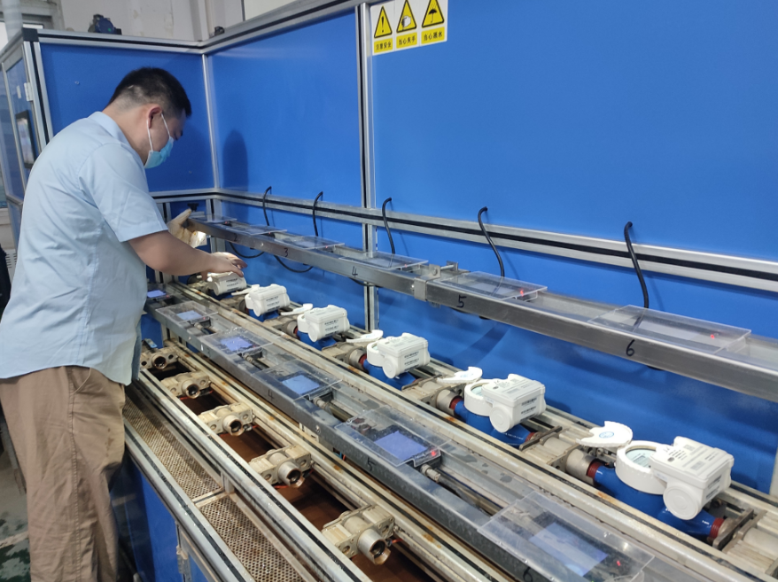 在京兆水表公司,工作人员对所谓的“省水神器贴”进行试验检测,结果显示不会干扰水表的计量。