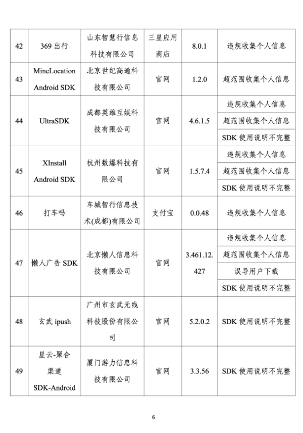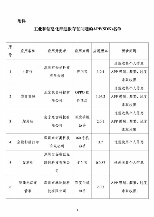 附件:工业和信息化部通报存在问题的APP(SDK)名单